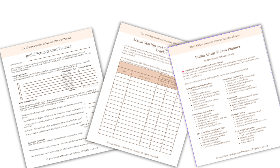 Get instant access to the Chicken Business Income Streams Planner after purchase and start turning your flock into a profitable business today!