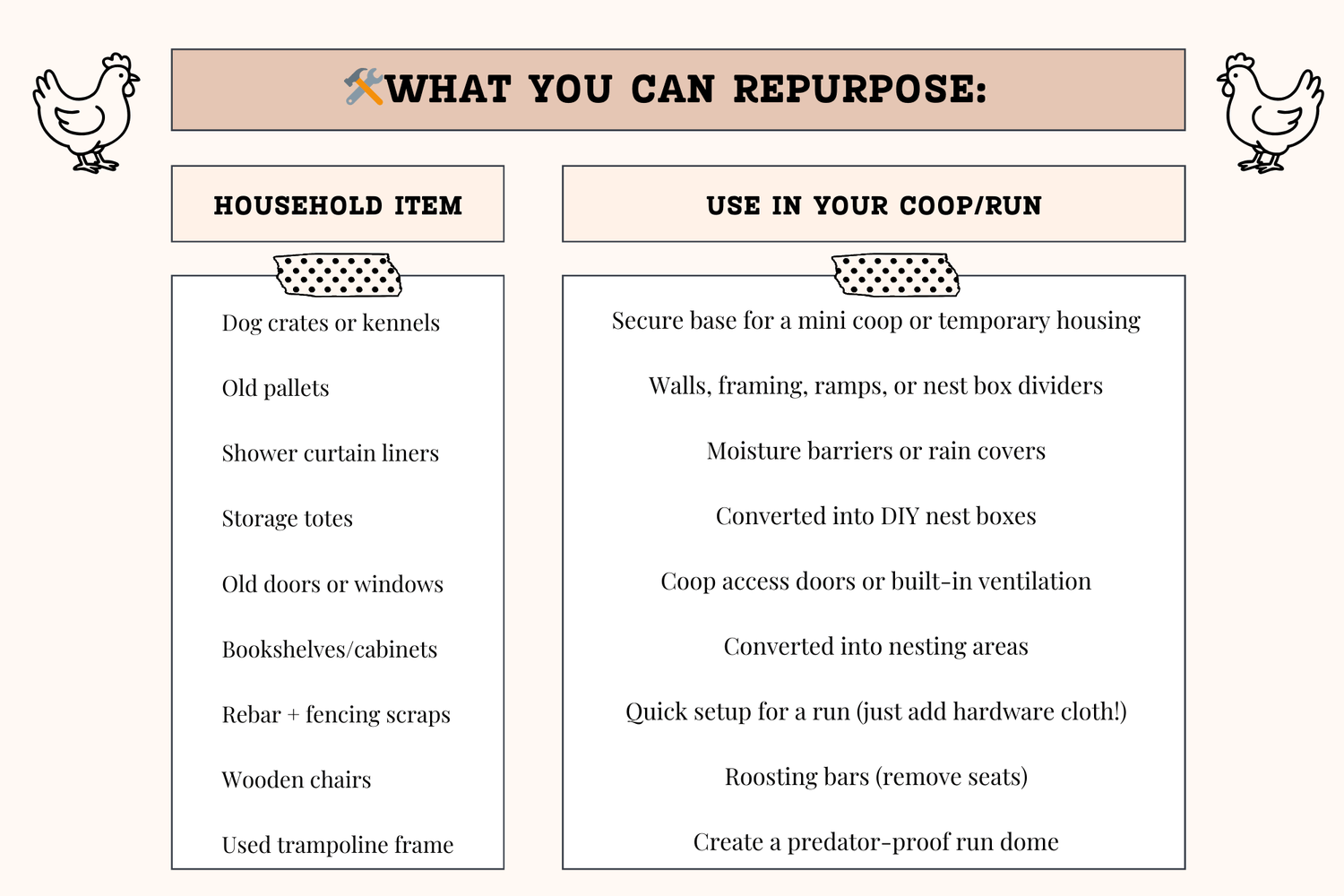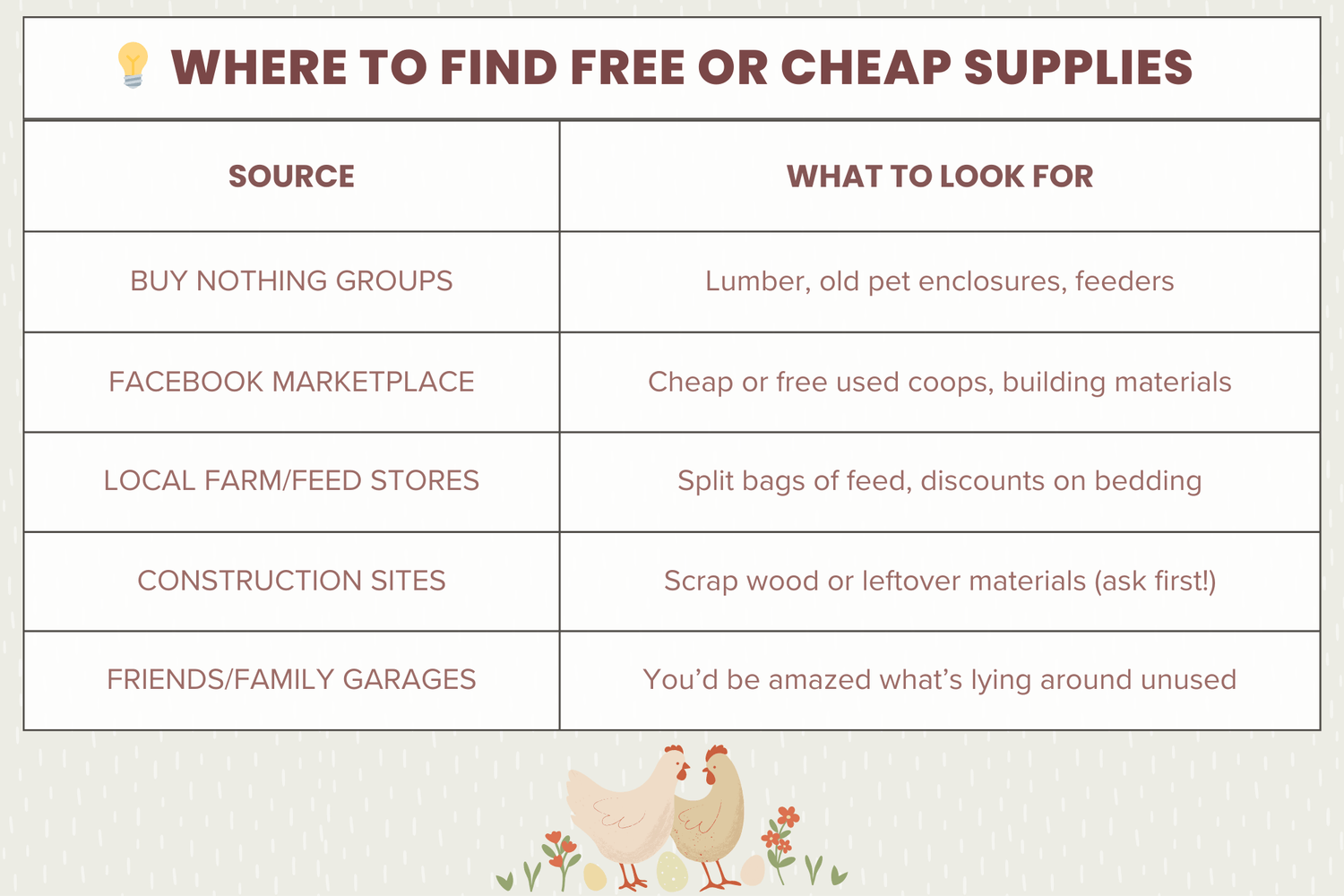 š§ Don't forget to check your local Facebook Marketplace, Craigslist, or neighborhood Buy Nothing groupsāpeople often give away old fencing, lumber, dog houses, and even entire coops for free or cheap!